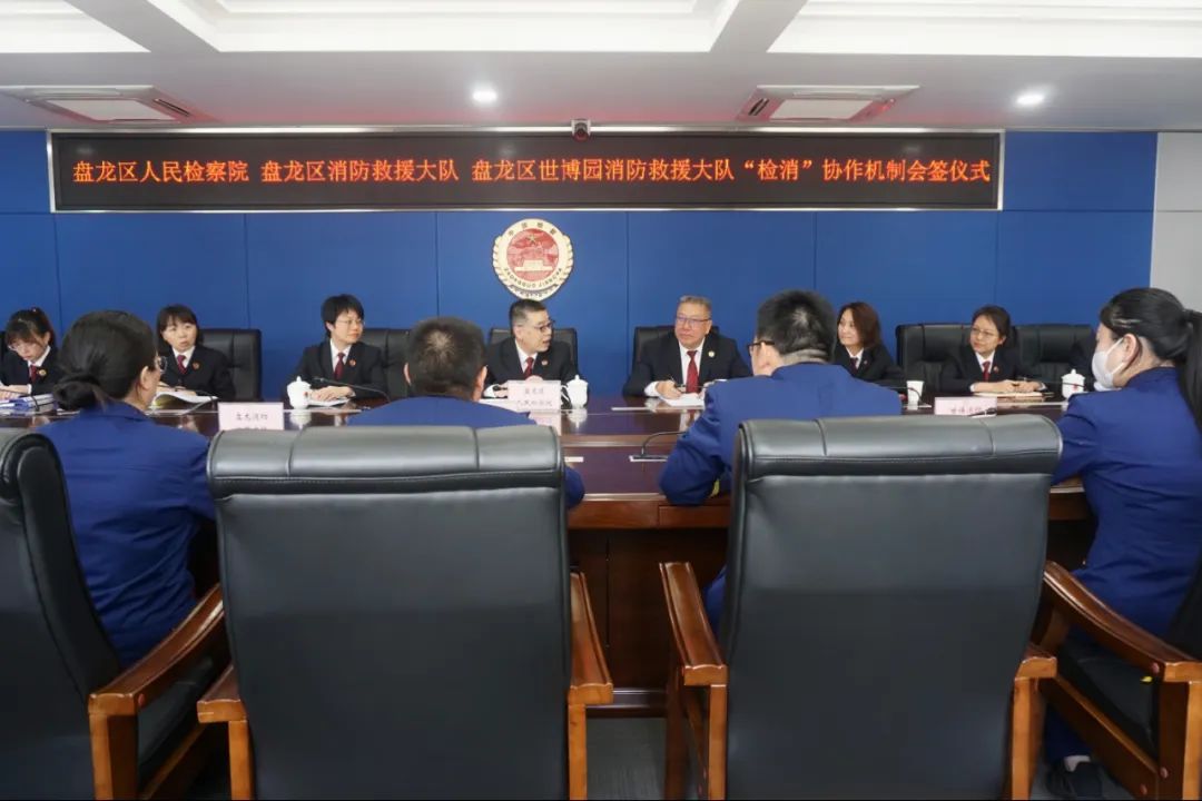 2022年5月6日,“检消”工作机制签约仪式在盘龙区人民检察院举行,盘龙区人民检察院党组书记、检察长鞠爽,盘龙区消防救援大队大队长汪勇,盘龙区世博园消防救援大队大队长杨希晨等出席会签仪式,区检察院党组成员、副检察长李晓兵主持会议。