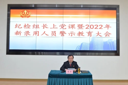 会上,盘龙区纪委监委驻区法院纪检监察组组长、区法院党组成员范磊以课为“礼”,向大家进行主题为“珍惜难得机会”的廉政授课,用不一样的心意欢迎大家加入盘龙法院大家庭。范磊结合自己学习感悟和体会,通过反面警示教育案例,从强化政治意识、树立政治规矩、强化法纪学习、注重学用结合、做好风险防范、牢固树立责任意识、牢固树立保密意识七个方面,教育引导新录用人员要切实把握好自己的人生之路、职业之路,做知纪守法的“明白人”、办依规守纪的“规矩事”、当新风正气的“践行者”。