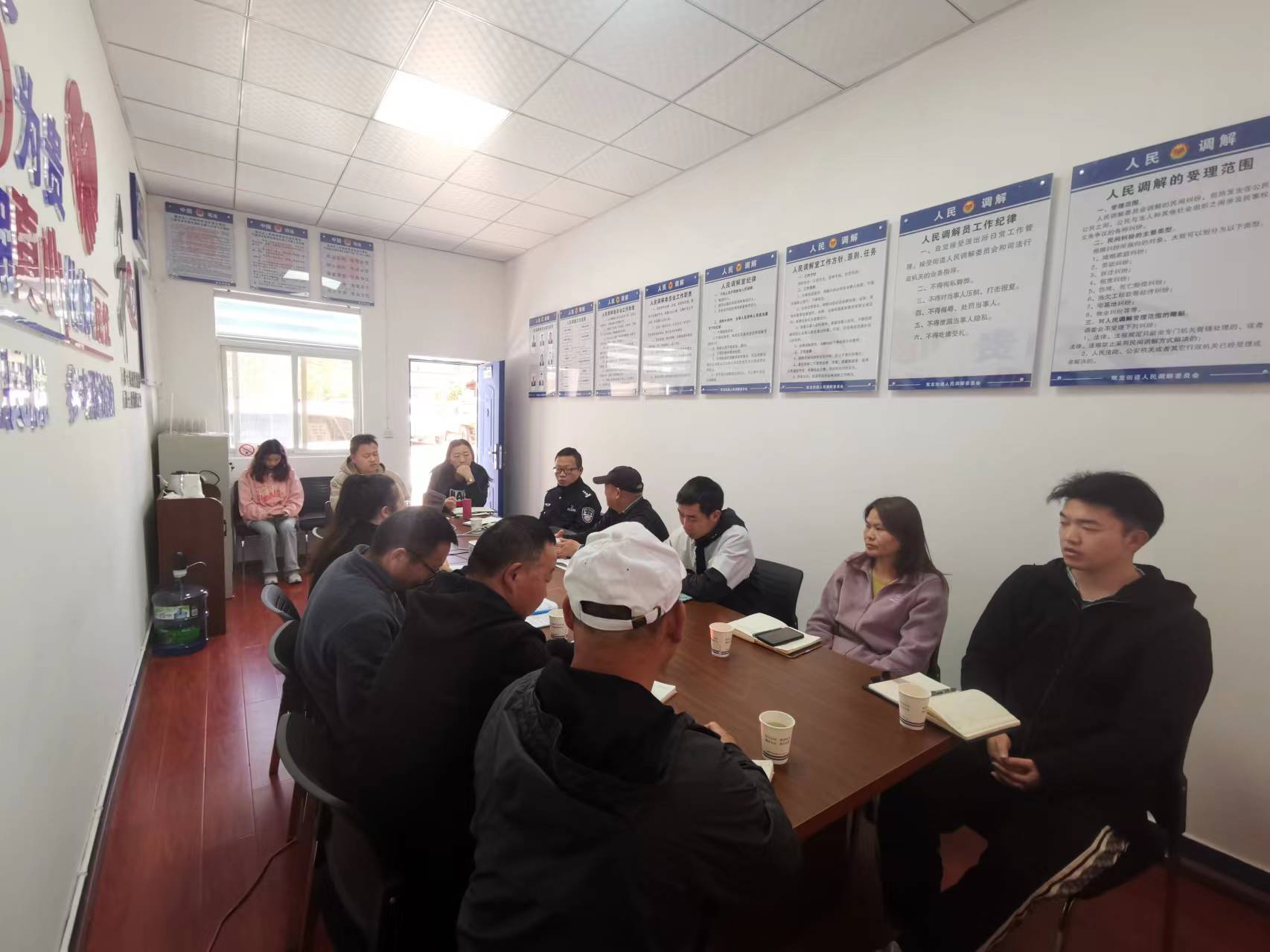 接到此线索后,街道综治中心、双龙司法所联合派出所、庄房社区及时对此纠纷进行研判。研判认为,此纠纷符合“六类风险隐患”条件,双龙街道立即按照“2+3+N”运行机制开展调处,综治中心、派出所、司法所、庄房社区、歌乐子小组相关人员组成联调小组,于调解当日前往派出所进行联合调解。