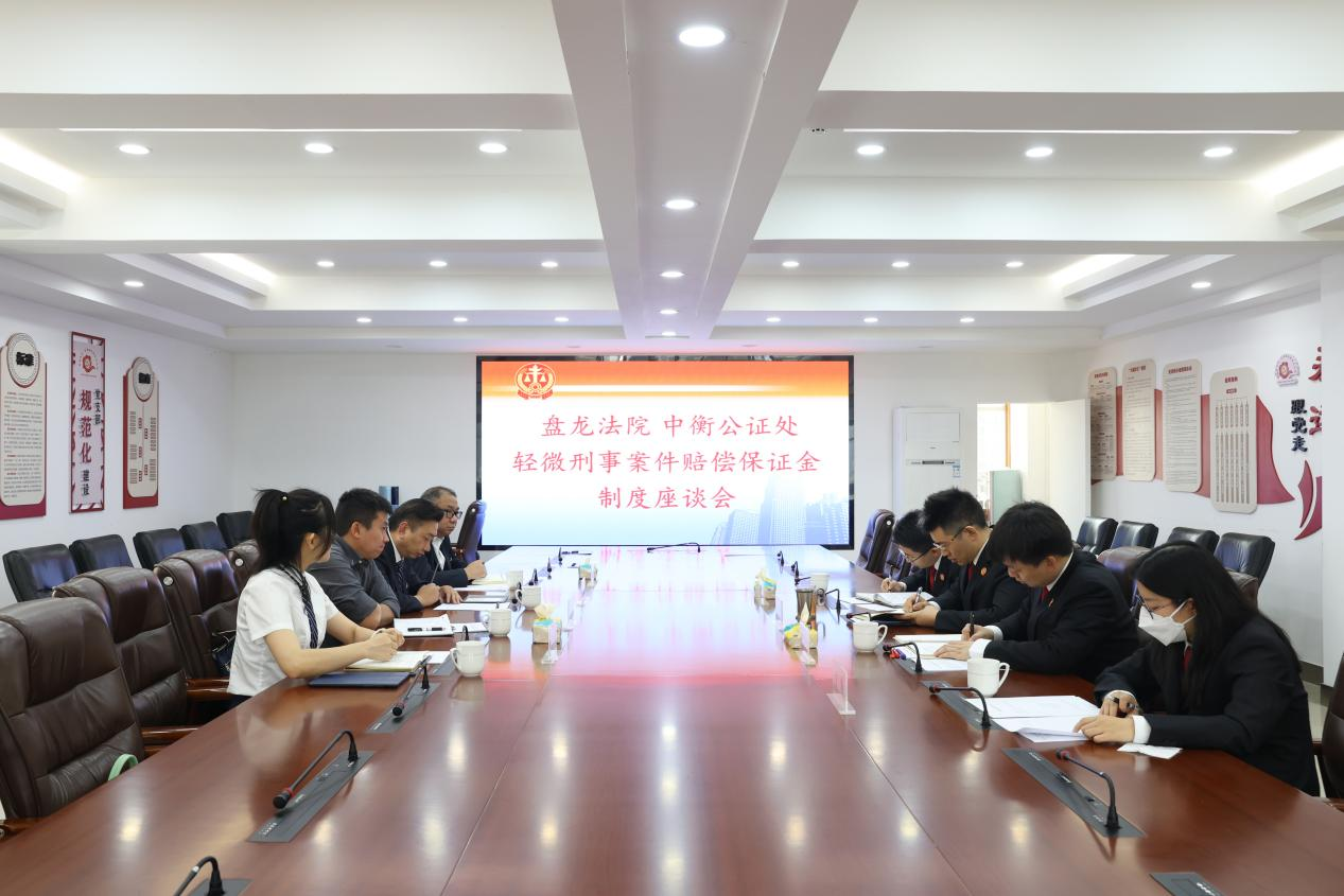 4月18日,盘龙区人民法院、盘龙区司法局、中衡公证处开展轻微刑事案件赔偿保证金制度座谈交流会并现场签署合作协议。交流会上,三方就《昆明市盘龙区人民法院轻微刑事案件赔偿保证金制度实施办法(试行)》(以下简称“《实施办法》”)进行讨论,并强调横向扩大赔偿保证金工作机制适用范围,由个案向类案推进,实现规模效应;纵向延伸赔偿保证金工作机制适用环节,让公证的积极作用贯穿诉讼全流程,进一步提高办案效率、节约司法资源,实现综合效应。