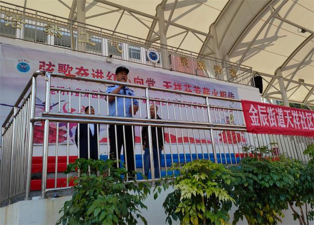 活动以学校课间操的时候进行,首先派出所民警以通俗易懂的语言,结合青少年吸毒案例,向师生们讲解了毒品的种类和危害、毒贩诱导青少年吸食毒品的“毒招”、以及如何识毒防毒拒毒等禁毒知识。其次社区工作人员向学生们发放宣传折页,同时还提醒同学们不要随意接收陌生人的物品,不结交有吸毒、贩毒行为的人,并引导学生们把毒品预防知识带回家,向家人宣传树立正确的人生观、价值观,筑牢思想防线,养成健康文明的生活方式。